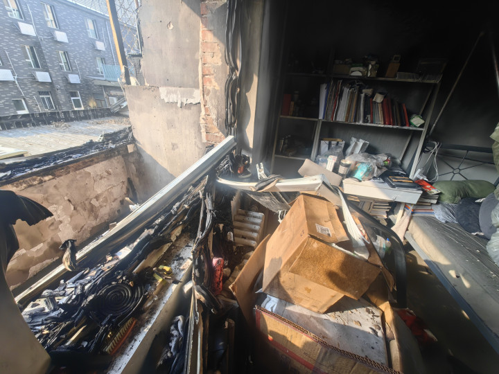 阳台被烧损。图源:海淀区消防救援支队